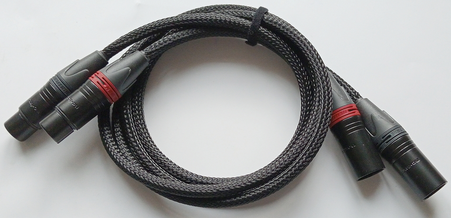 Neutrik Stecker vergoldet | Innenleiter versilbert 0,08 mm² - Abschirmung versilbert | Kapazität: 65 pF | Wires resistance: 75 Ω/km | Isolation: PTFE / FEP